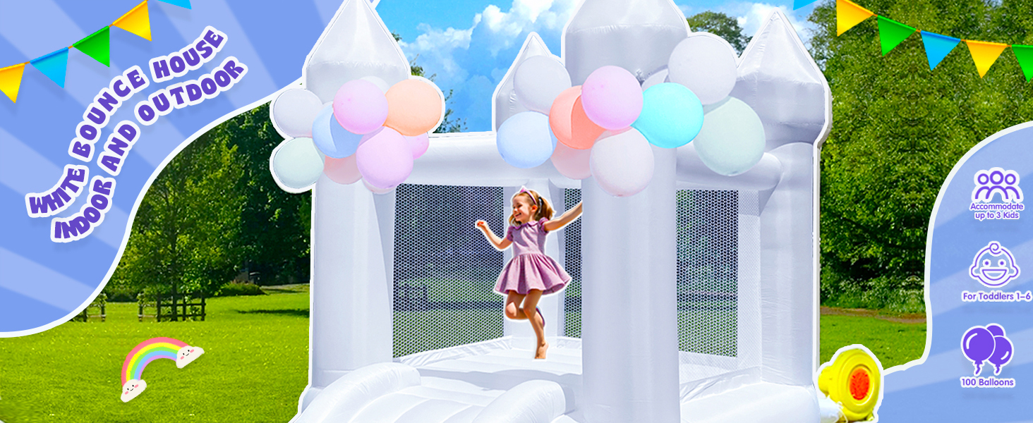 White Bounce House Indoor Outdoor Bouncy Castle for Kids 2-8 Oxford Toddler Bounce House with Slide Balloon & Blower,103 x 71 x 90 inch,Children's Birthday Party Easter Party Gifts